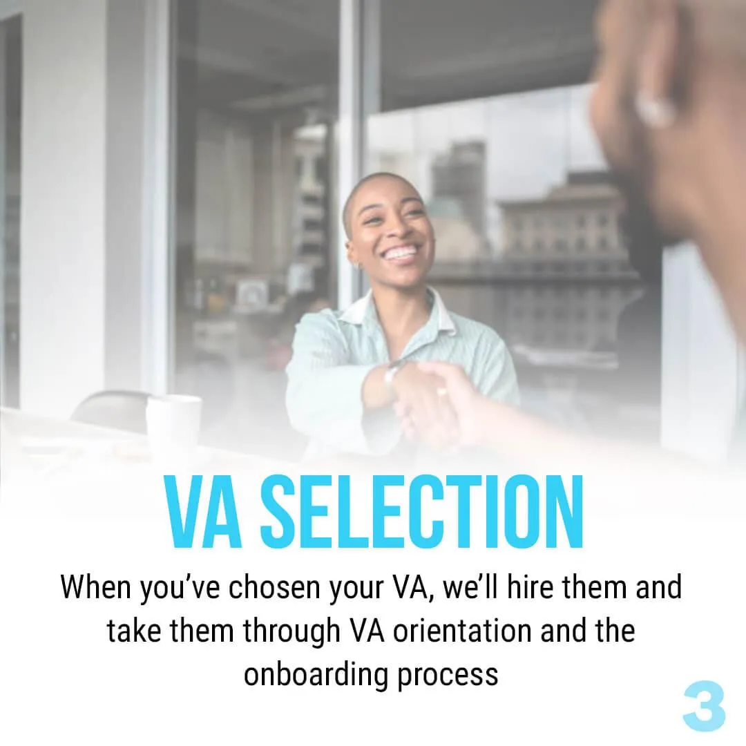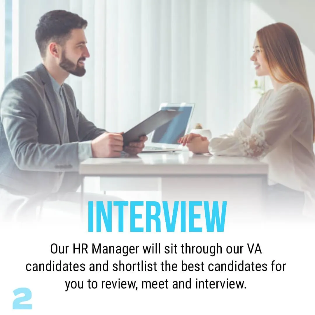 Yes, you get to choose from a list of our 2-3 certified Virtual Assistants. We put you on a Meet and Greet Zoom meeting with the candidate/s so you can get to know them if they are fit for the position you are looking for. After that, your chosen candidate will be paired with you and you can onboard them after 7-10 days.
